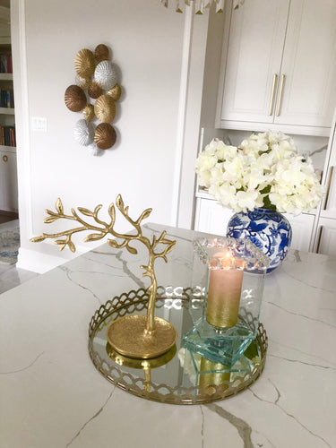 Gold Embossed Leaf Dish with Branched Candle Holder